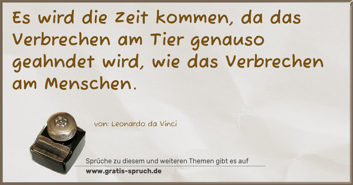 Es wird die Zeit kommen, da das Verbrechen am Tier genauso geahndet wird, wie das Verbrechen am Menschen.