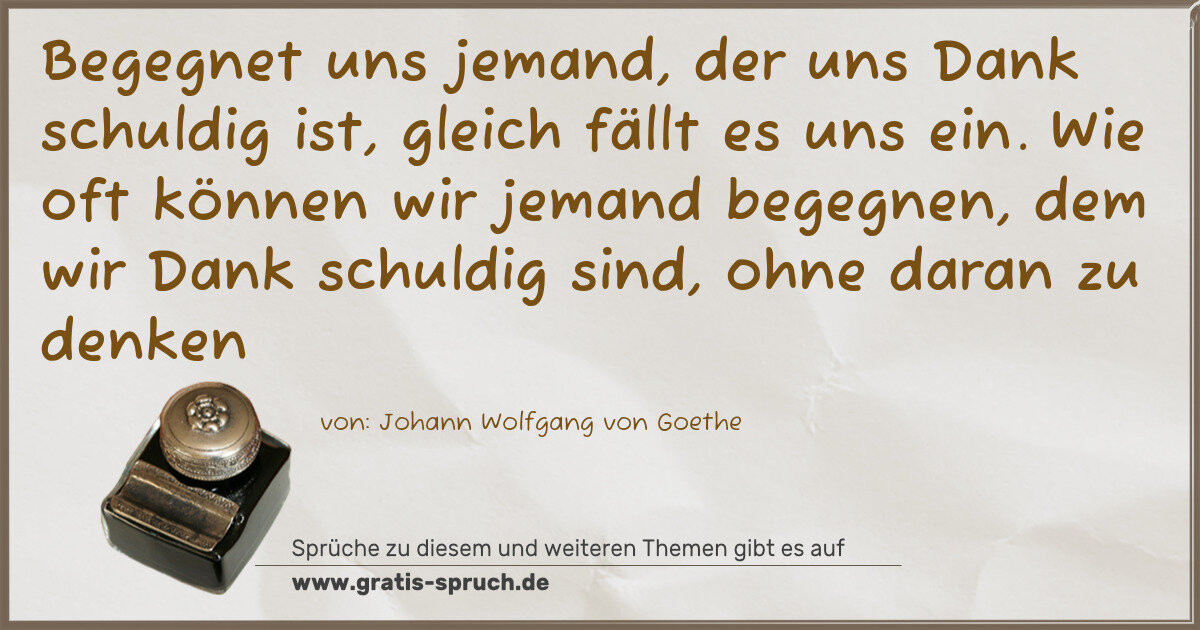 Begegnet uns jemand, der uns Dank schuldig ist, gleich fällt es uns ein. Wie oft können wir jemand begegnen, dem wir Dank schuldig sind, ohne daran zu denken
