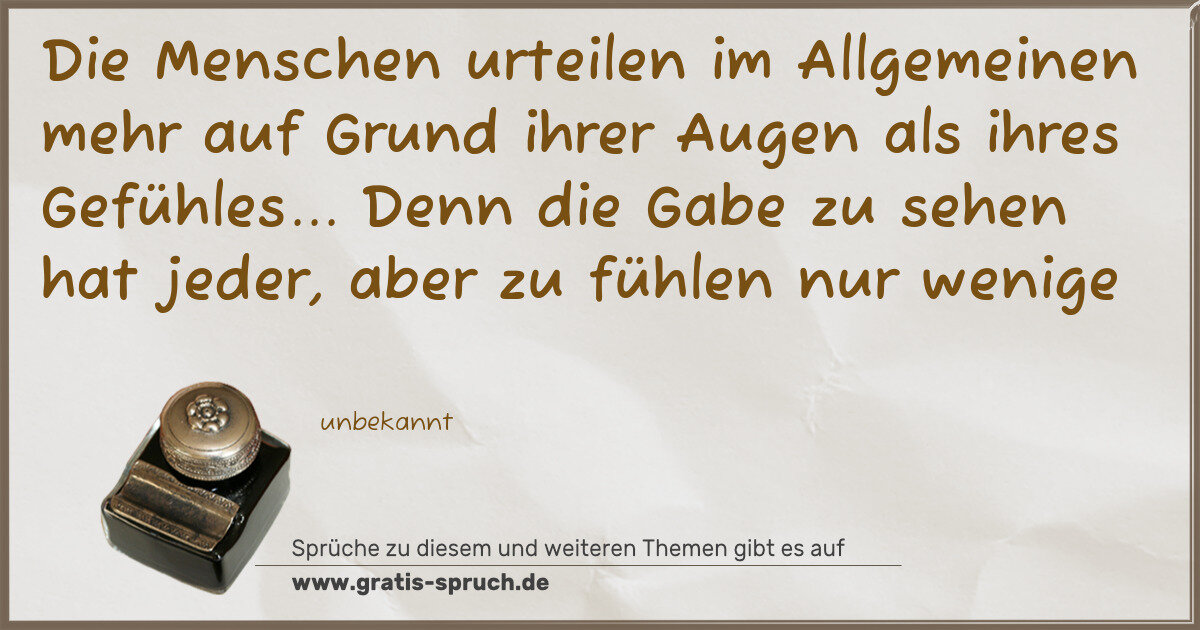 Die Menschen urteilen im Allgemeinen mehr auf Grund ihrer Augen als ihres Gefühles... Denn die Gabe zu sehen hat jeder, aber zu fühlen nur wenige