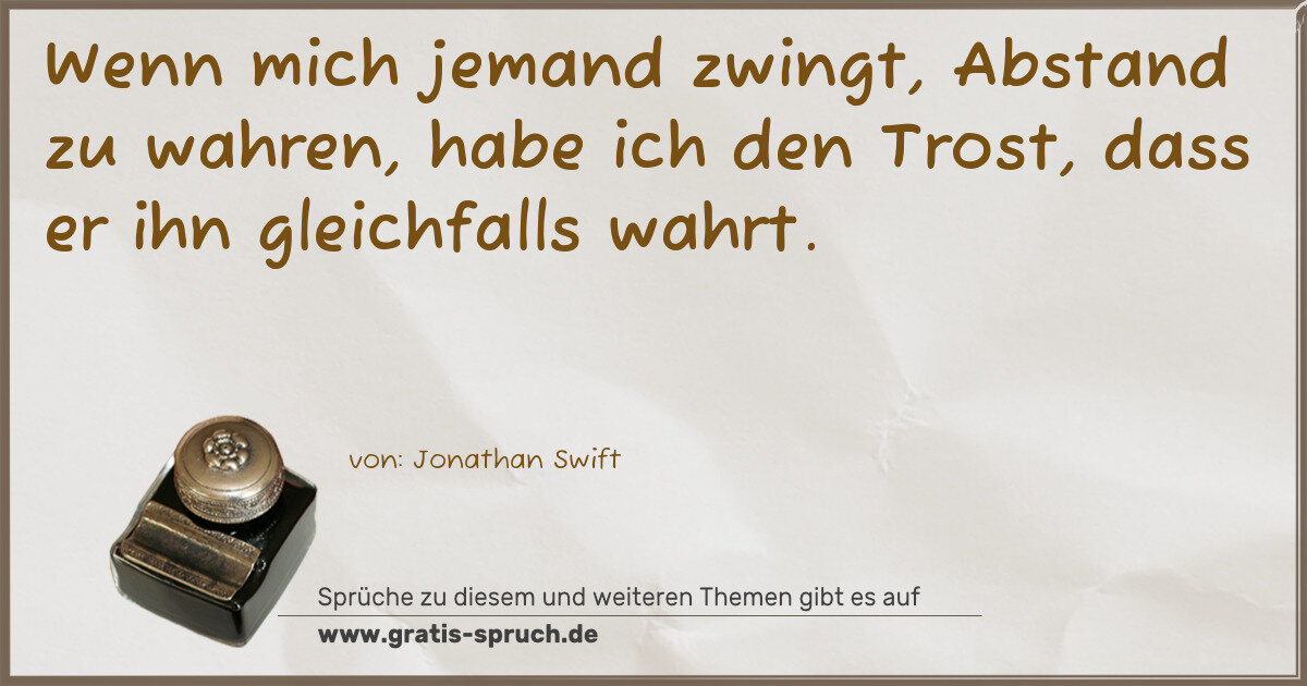 Wenn mich jemand zwingt, Abstand zu wahren, habe ich den Trost, dass er ihn gleichfalls wahrt.