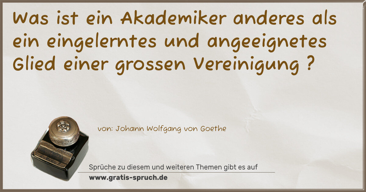 Was ist ein Akademiker anderes als ein eingelerntes und angeeignetes Glied einer grossen Vereinigung ?