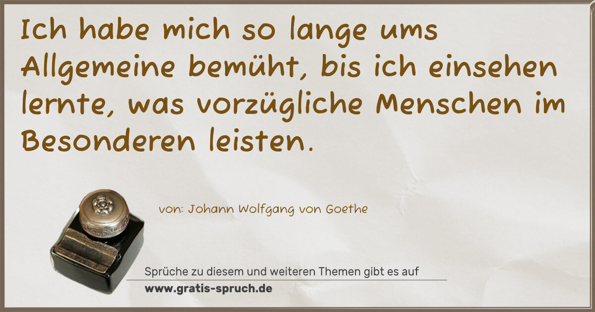 Ich habe mich so lange ums Allgemeine bemüht, bis ich einsehen lernte, was vorzügliche Menschen im Besonderen leisten.