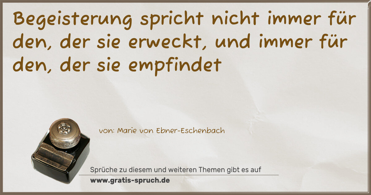 Begeisterung spricht nicht immer für den, der sie erweckt, und immer für den, der sie empfindet