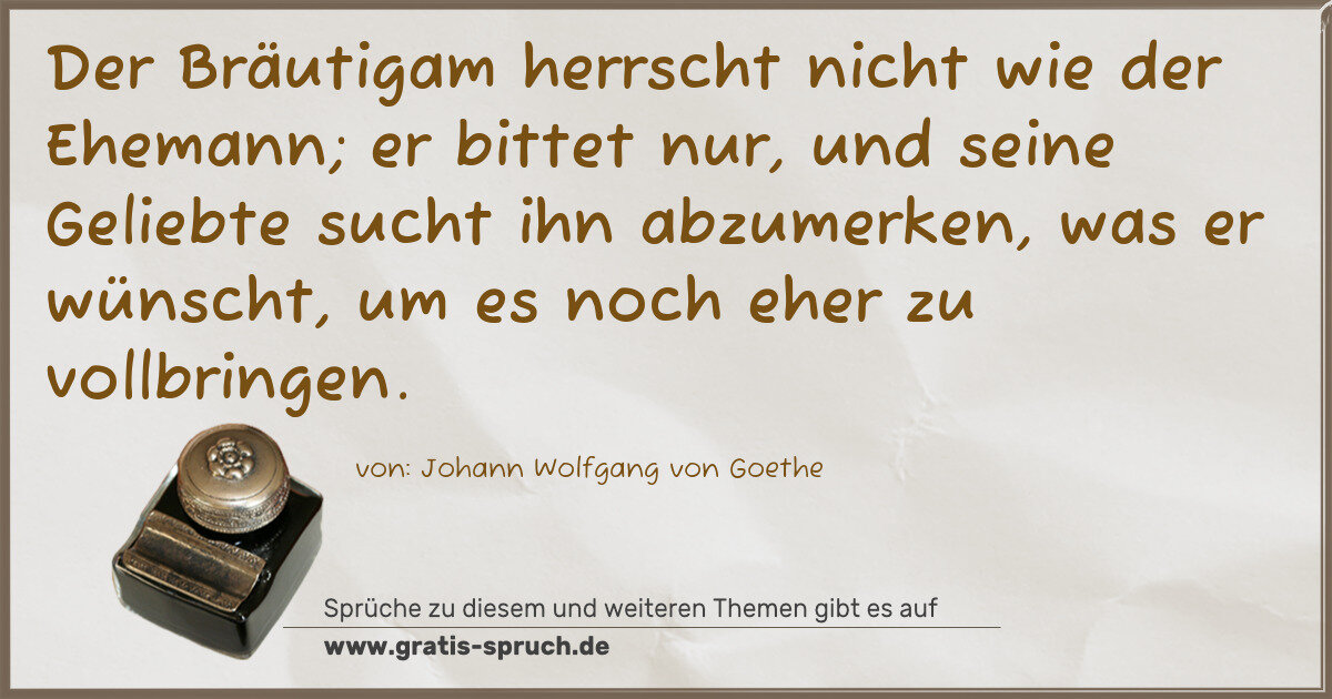 Der Bräutigam herrscht nicht wie der Ehemann; er bittet nur, und seine Geliebte sucht ihn abzumerken, was er wünscht, um es noch eher zu vollbringen.
