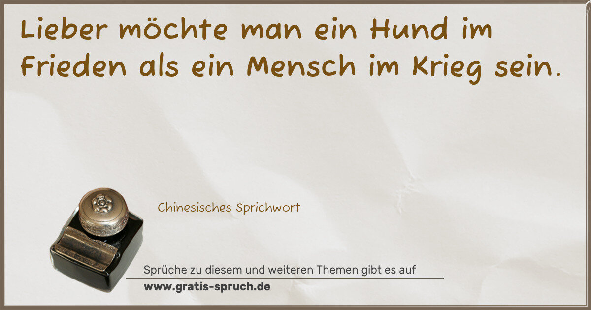 Lieber möchte man ein Hund im Frieden als ein Mensch im Krieg sein.