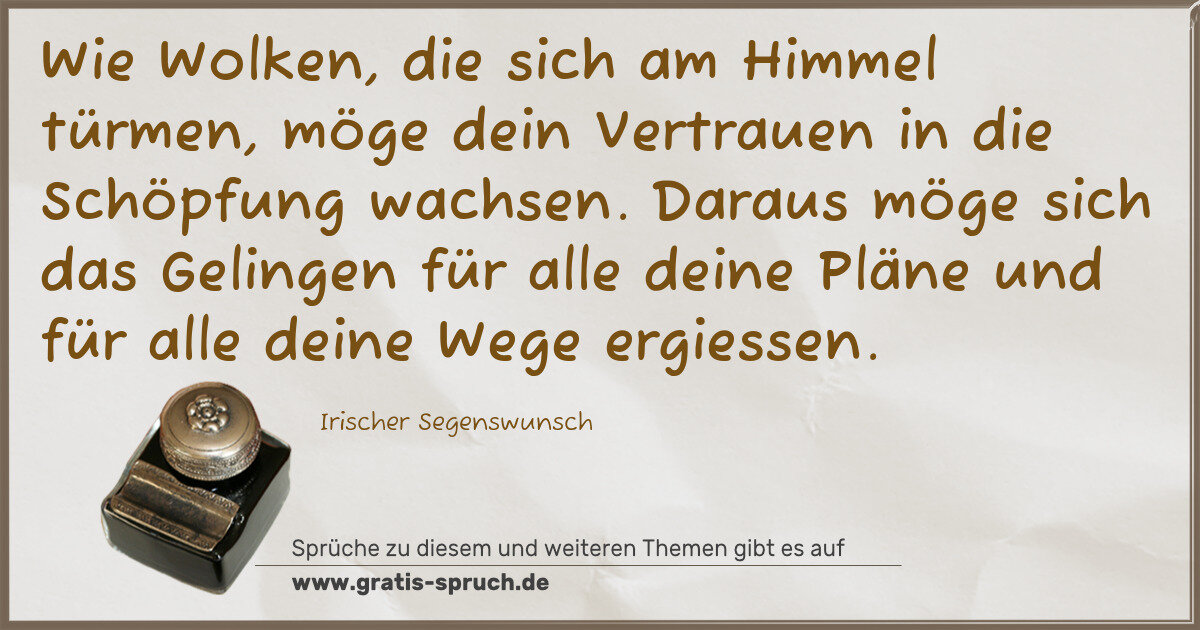 Wie Wolken, die sich am Himmel türmen, möge dein Vertrauen in die Schöpfung wachsen. Daraus möge sich das Gelingen für alle deine Pläne und für alle deine Wege ergiessen.