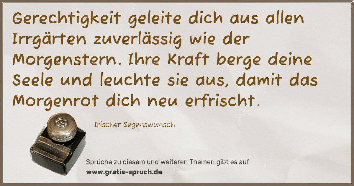 Gerechtigkeit geleite dich aus allen Irrgärten zuverlässig wie der Morgenstern. Ihre Kraft berge deine Seele und leuchte sie aus, damit das Morgenrot dich neu erfrischt.