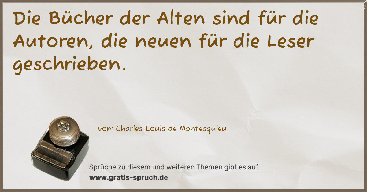 Die Bücher der Alten sind für die Autoren, die neuen für die Leser geschrieben.