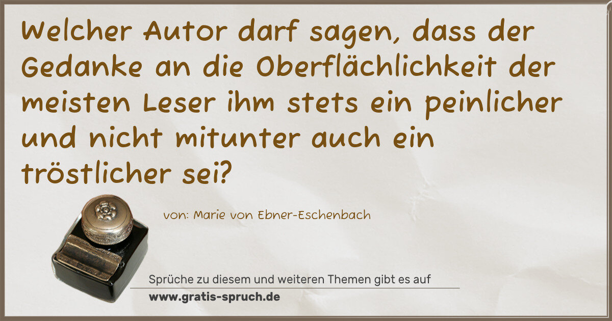 Welcher Autor darf sagen, dass der Gedanke an die Oberflächlichkeit der meisten Leser ihm stets ein peinlicher und nicht mitunter auch ein tröstlicher sei?