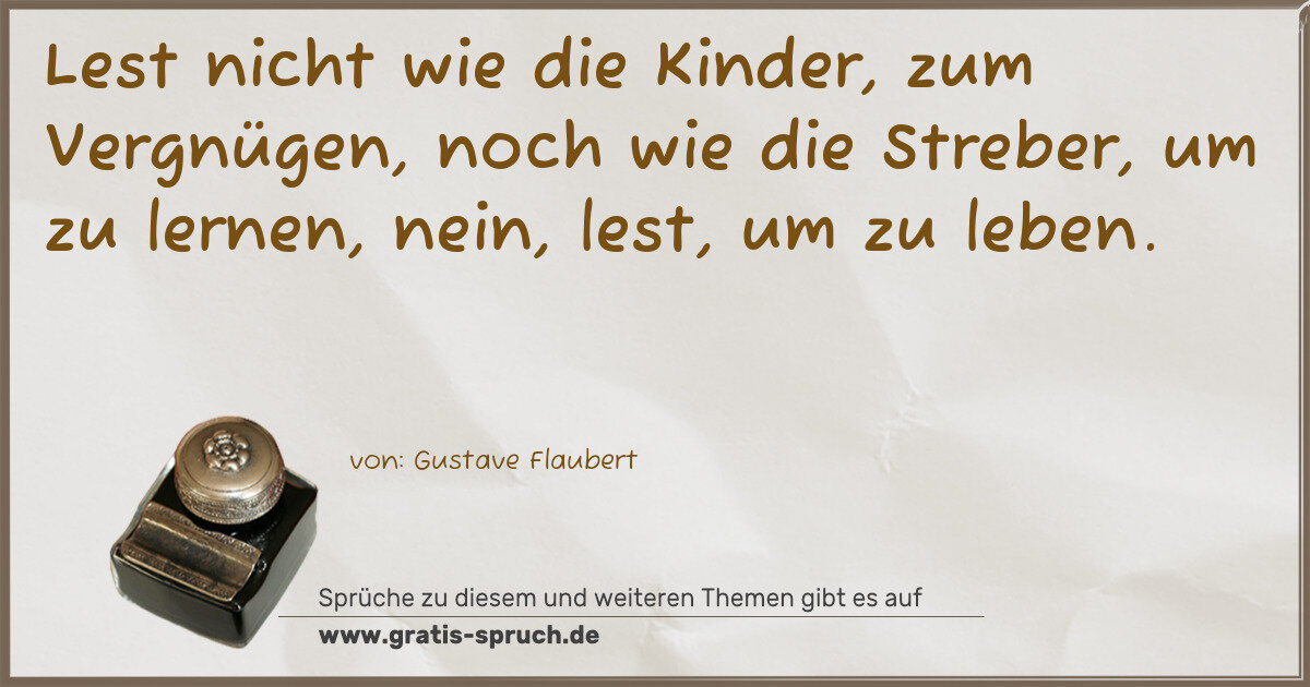 Lest nicht wie die Kinder, zum Vergnügen, noch wie die Streber, um zu lernen, nein, lest, um zu leben.