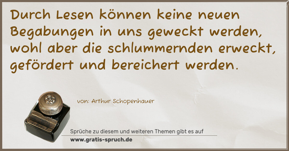 Durch Lesen können keine neuen Begabungen in uns geweckt werden, wohl aber die schlummernden erweckt, gefördert und bereichert werden.