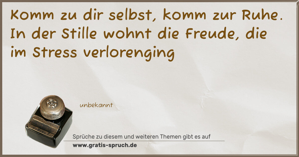 Komm zu dir selbst, komm zur Ruhe. In der Stille wohnt die Freude, die im Stress verlorenging