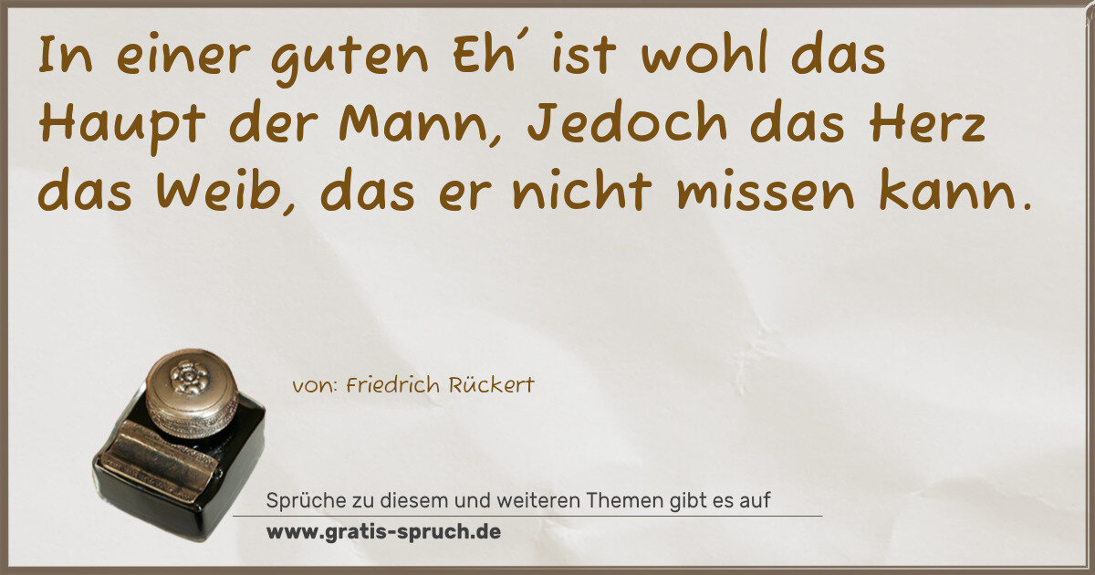 In einer guten Eh' ist wohl das Haupt der Mann, Jedoch das Herz das Weib, das er nicht missen kann.