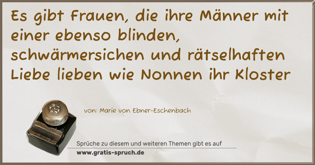 Es gibt Frauen, die ihre Männer mit einer ebenso blinden, schwärmersichen und rätselhaften Liebe lieben wie Nonnen ihr Kloster