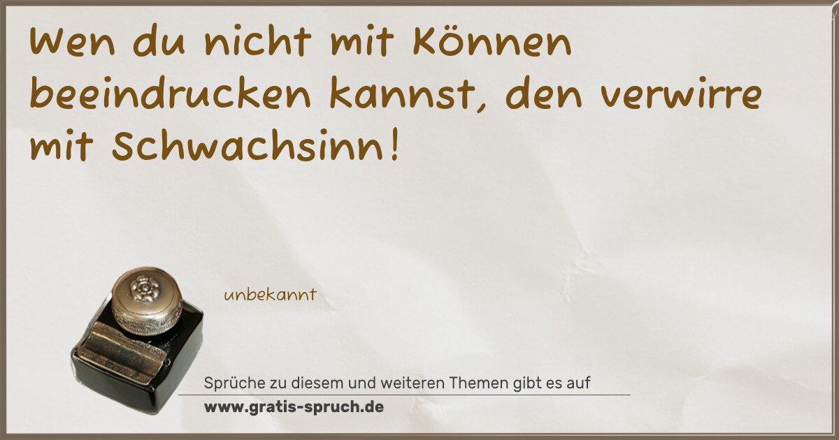 Wen du nicht mit Können beeindrucken kannst, den verwirre mit Schwachsinn!