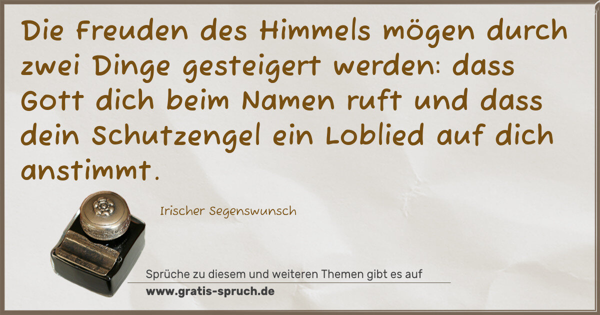 Die Freuden des Himmels mögen durch zwei Dinge gesteigert werden: dass Gott dich beim Namen ruft und dass dein Schutzengel ein Loblied auf dich anstimmt.