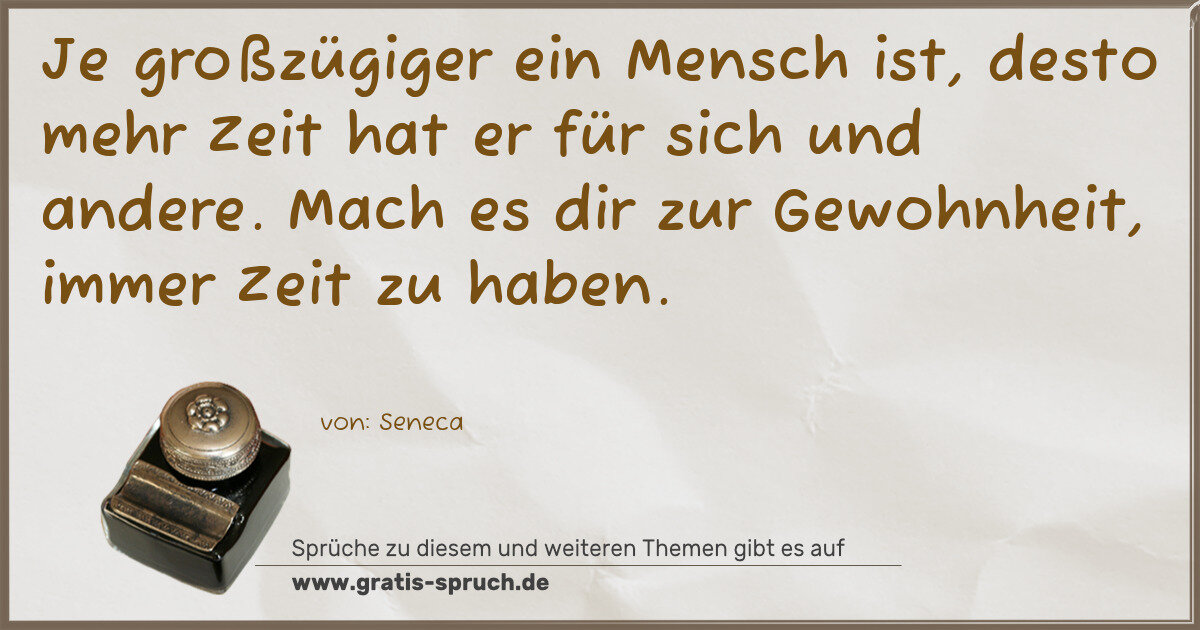 Je großzügiger ein Mensch ist, desto mehr Zeit hat er für sich und andere. Mach es dir zur Gewohnheit, immer Zeit zu haben.