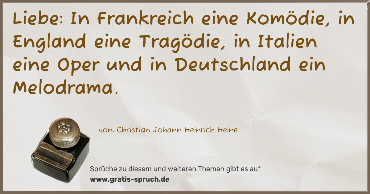 Liebe: In Frankreich eine Komödie, in England eine Tragödie, in Italien eine Oper und in Deutschland ein Melodrama.