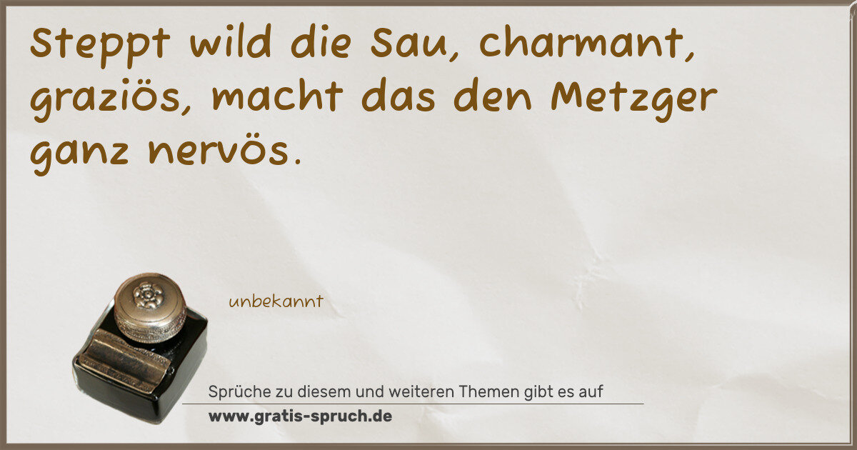 Steppt wild die Sau, charmant, graziös, macht das den Metzger ganz nervös.