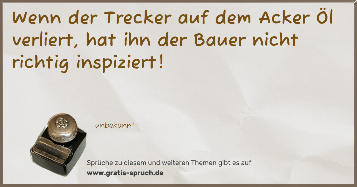 Wenn der Trecker auf dem Acker Öl verliert, hat ihn der Bauer nicht richtig inspiziert!