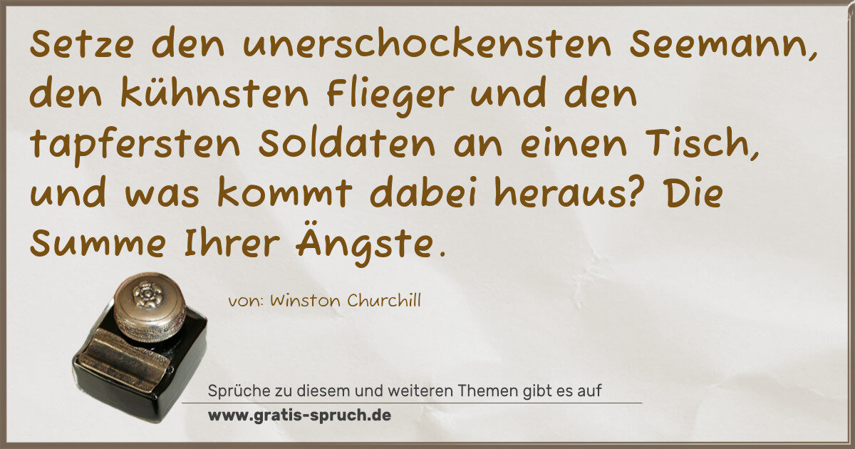Setze den unerschockensten Seemann, den kühnsten Flieger und den tapfersten Soldaten an einen Tisch, und was kommt dabei heraus? Die Summe Ihrer Ängste.