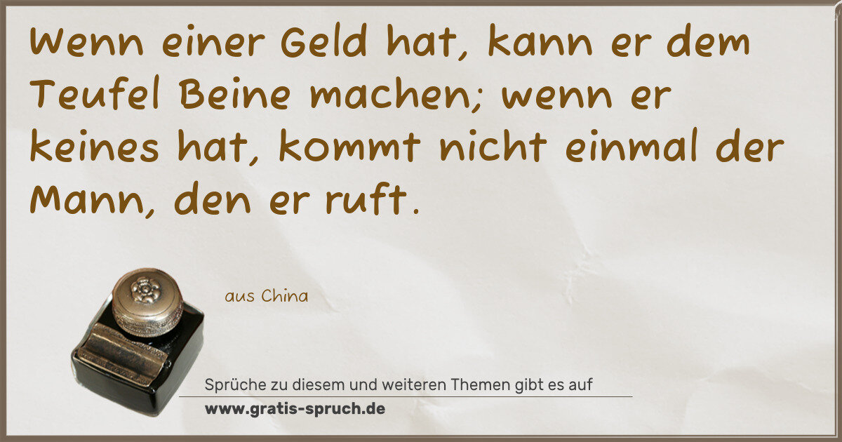 Wenn einer Geld hat, kann er dem Teufel Beine machen; wenn er keines hat, kommt nicht einmal der Mann, den er ruft.
