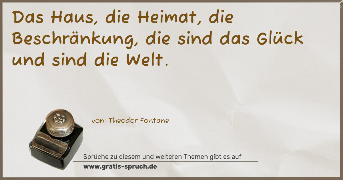Das Haus, die Heimat, die Beschränkung, die sind das Glück und sind die Welt.
