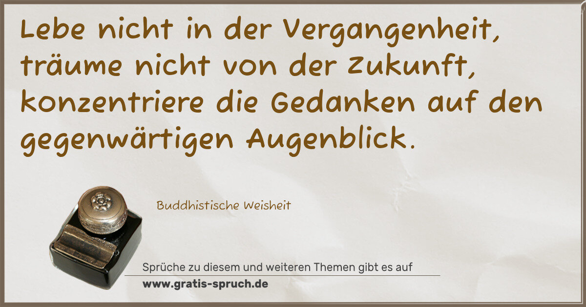Lebe nicht in der Vergangenheit, träume nicht von der Zukunft, konzentriere die Gedanken auf den gegenwärtigen Augenblick.