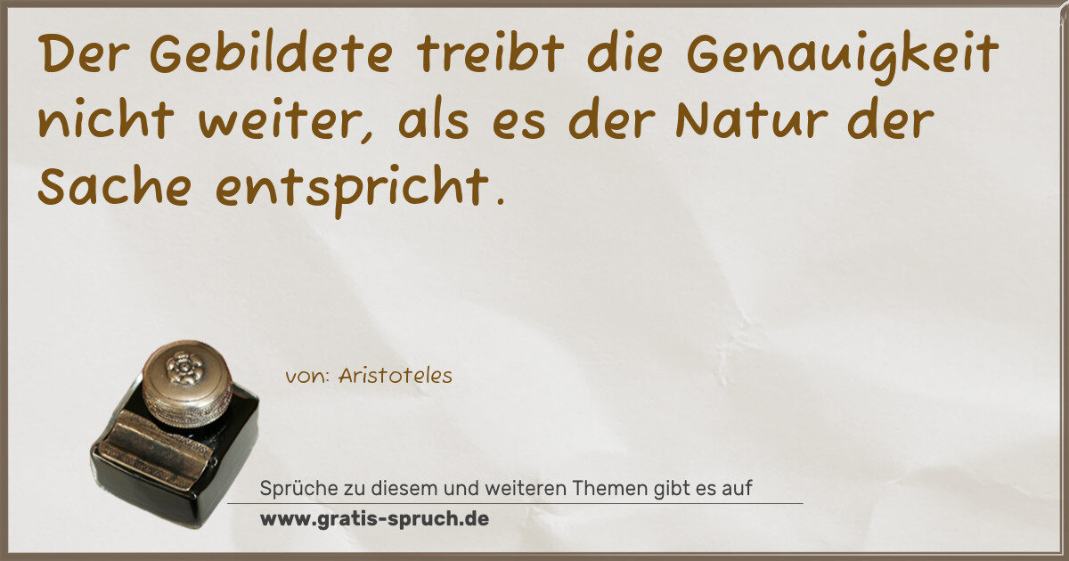 Der Gebildete treibt die Genauigkeit nicht weiter, als es der Natur der Sache entspricht.