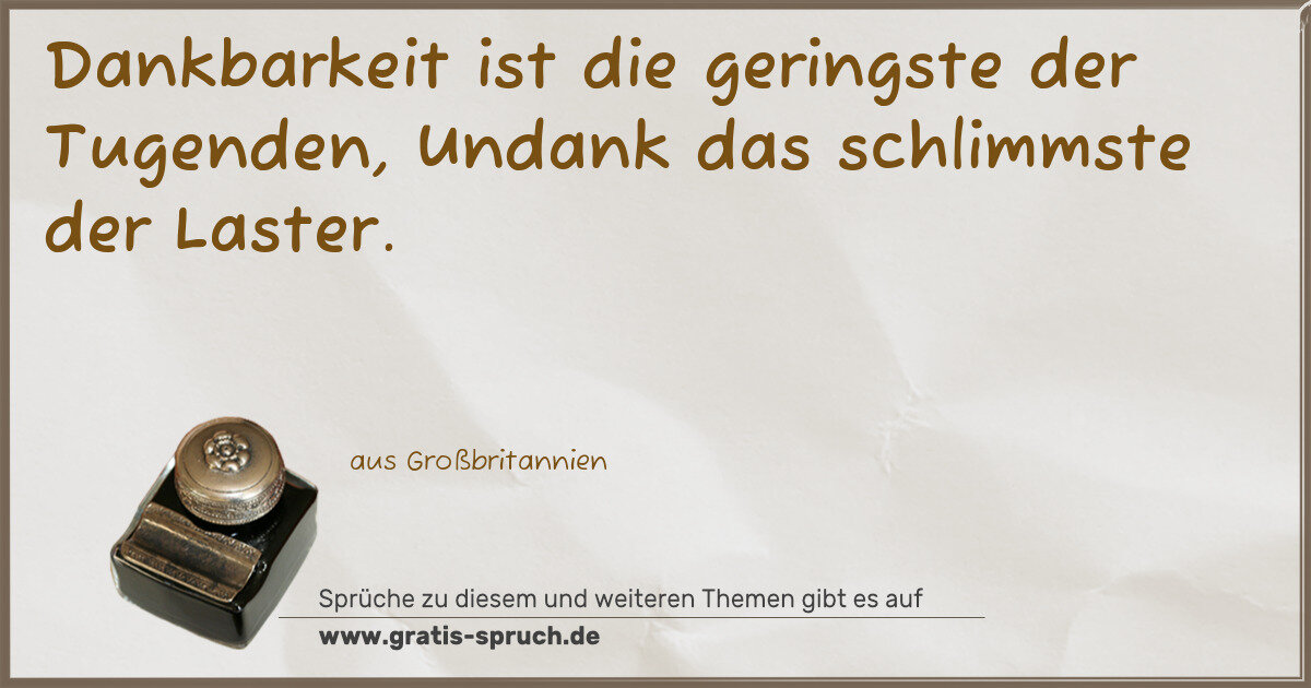 Dankbarkeit ist die geringste der Tugenden, Undank das schlimmste der Laster.
