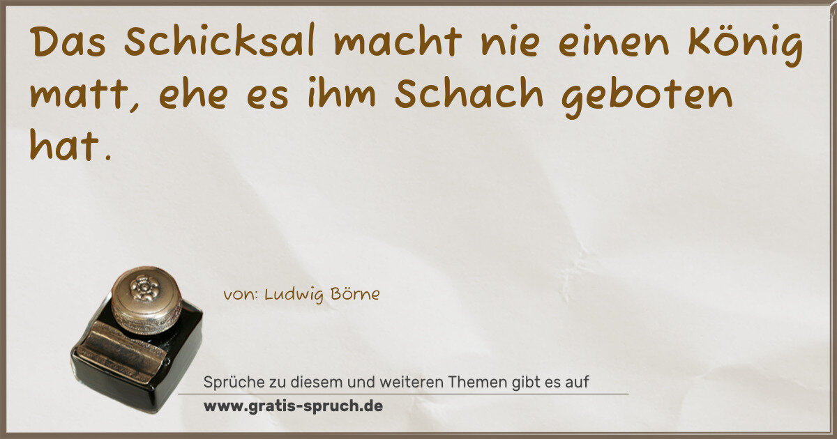 Das Schicksal macht nie einen König matt, ehe es ihm Schach geboten hat.