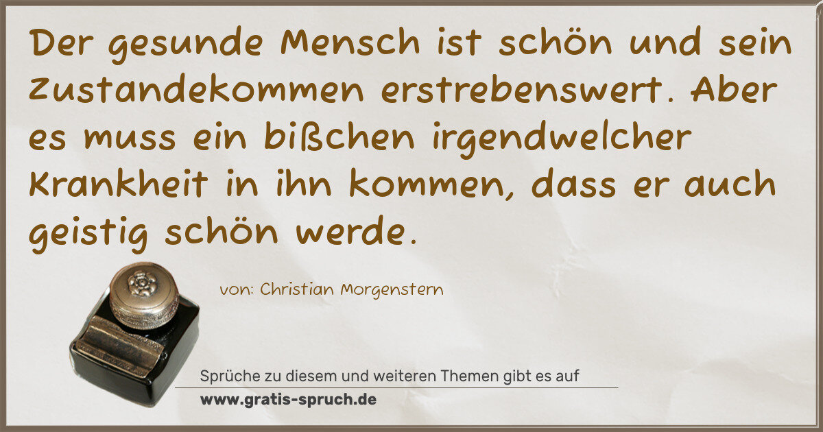 Der gesunde Mensch ist schön und sein Zustandekommen erstrebenswert. Aber es muss ein bißchen irgendwelcher Krankheit in ihn kommen, dass er auch geistig schön werde.