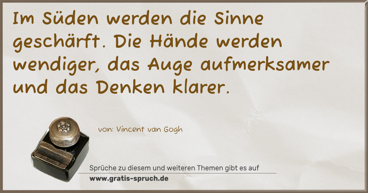 Im Süden werden die Sinne geschärft. Die Hände werden wendiger, das Auge aufmerksamer und das Denken klarer.