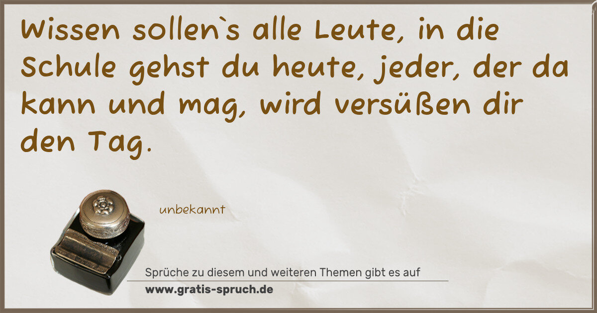 Wissen sollen`s alle Leute, in die Schule gehst du heute, jeder, der da kann und mag, wird versüßen dir den Tag.