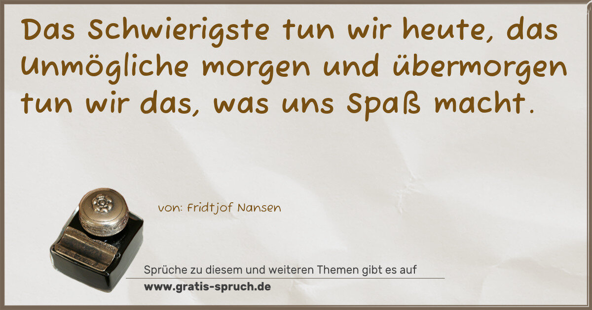 Das Schwierigste tun wir heute, das Unmögliche morgen und übermorgen tun wir das, was uns Spaß macht.