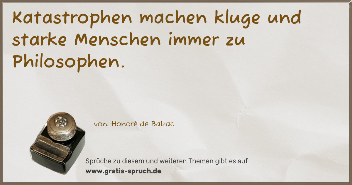 Katastrophen machen kluge und starke Menschen immer zu Philosophen.
