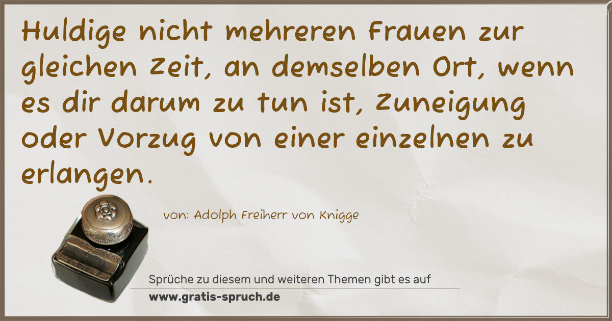 Huldige nicht mehreren Frauen zur gleichen Zeit, an demselben Ort, wenn es dir darum zu tun ist, Zuneigung oder Vorzug von einer einzelnen zu erlangen.