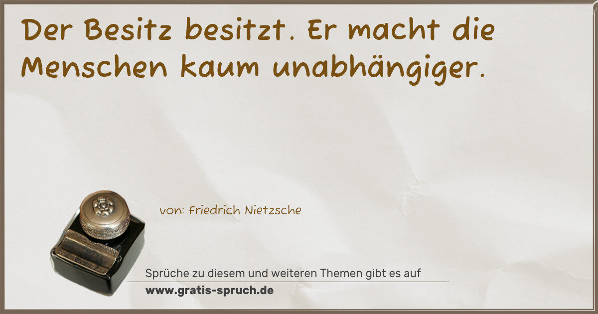 Der Besitz besitzt. Er macht die Menschen kaum unabhängiger.