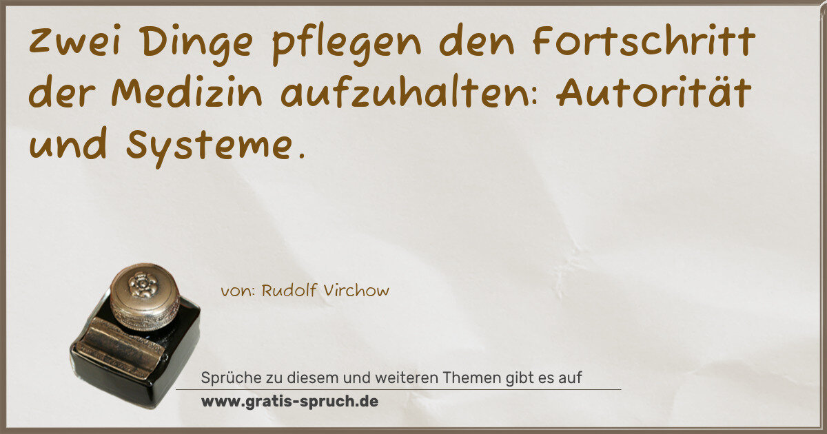 Zwei Dinge pflegen den Fortschritt der Medizin aufzuhalten: Autorität und Systeme.