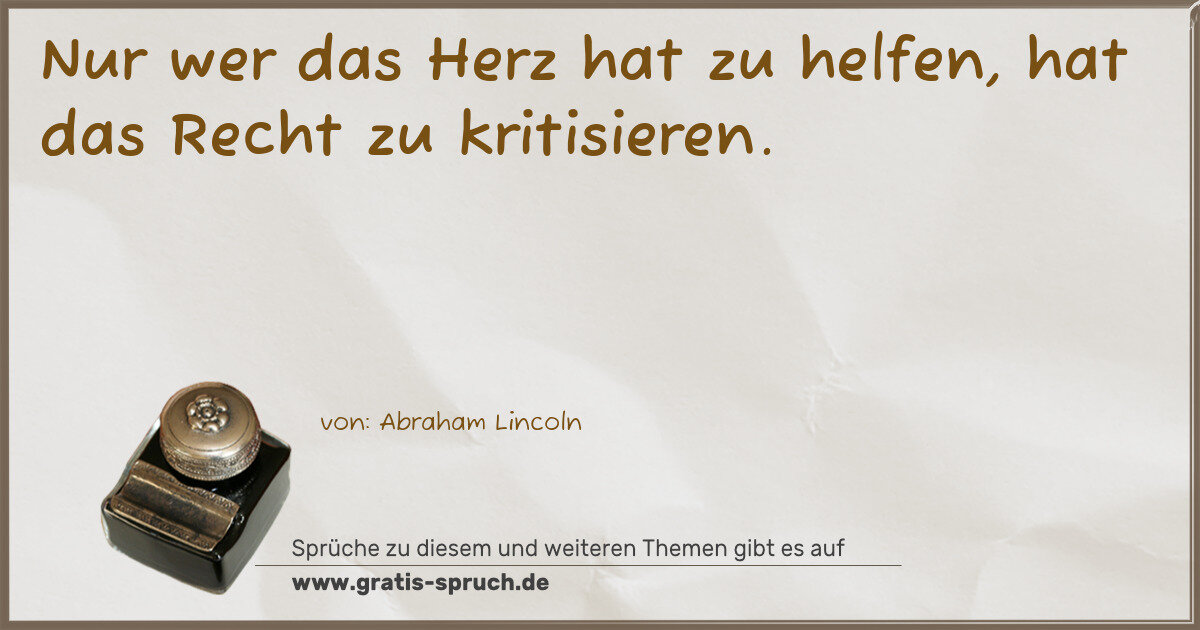 Nur wer das Herz hat zu helfen, hat das Recht zu kritisieren.