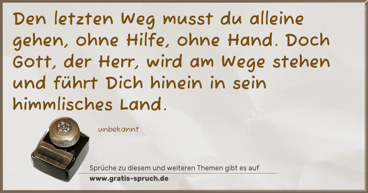 Den letzten Weg musst du alleine gehen, ohne Hilfe, ohne Hand. Doch Gott, der Herr, wird am Wege stehen und führt Dich hinein in sein himmlisches Land.