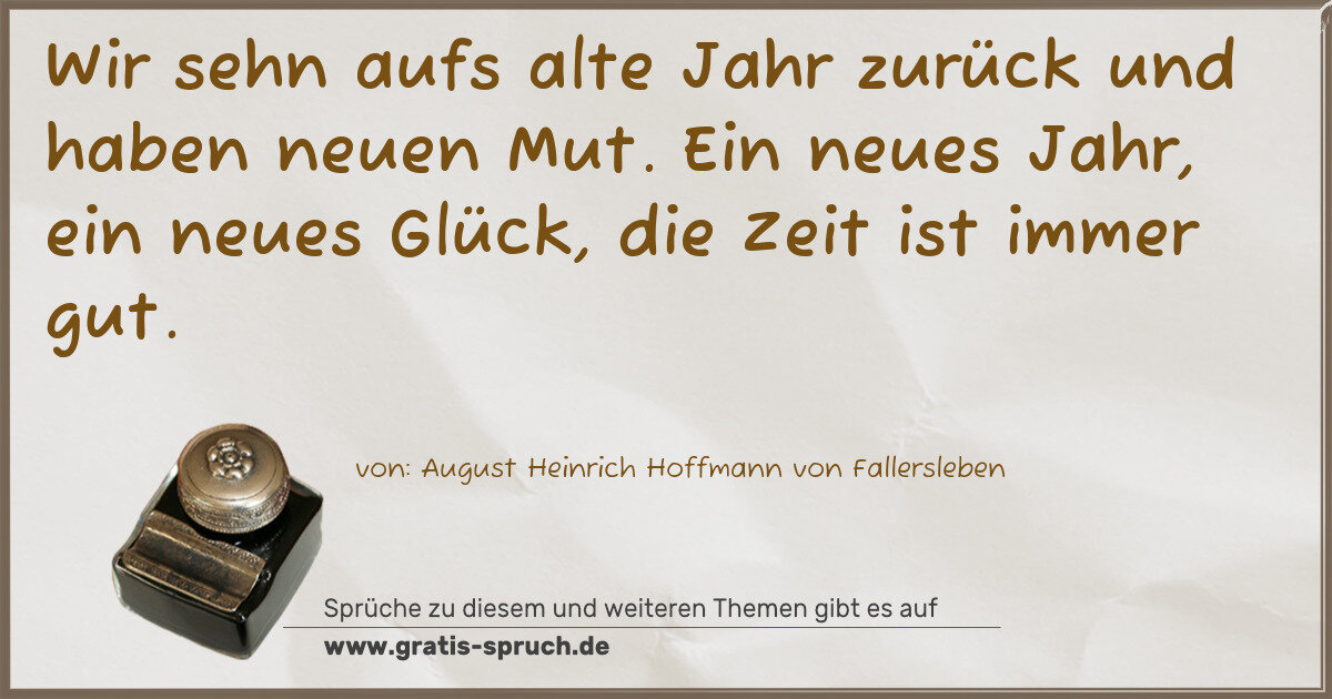 Wir sehn aufs alte Jahr zurück und haben neuen Mut. Ein neues Jahr, ein neues Glück, die Zeit ist immer gut.
