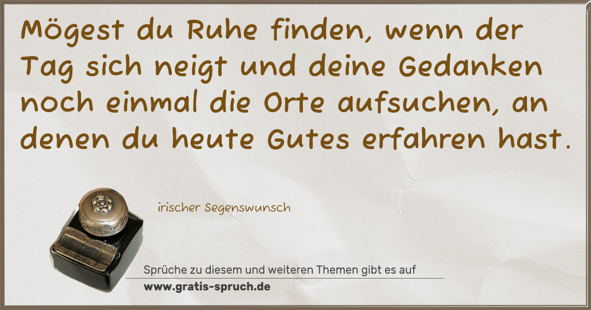 Mögest du Ruhe finden, wenn der Tag sich neigt und deine Gedanken noch einmal die Orte aufsuchen, an denen du heute Gutes erfahren hast.