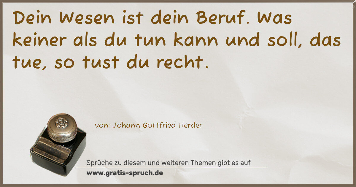 Dein Wesen ist dein Beruf. Was keiner als du tun kann und soll, das tue, so tust du recht.