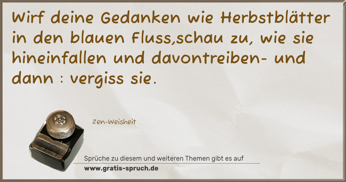 Wirf deine Gedanken wie Herbstblätter in den blauen Fluss,schau zu, wie sie hineinfallen und davontreiben- und dann : vergiss sie.