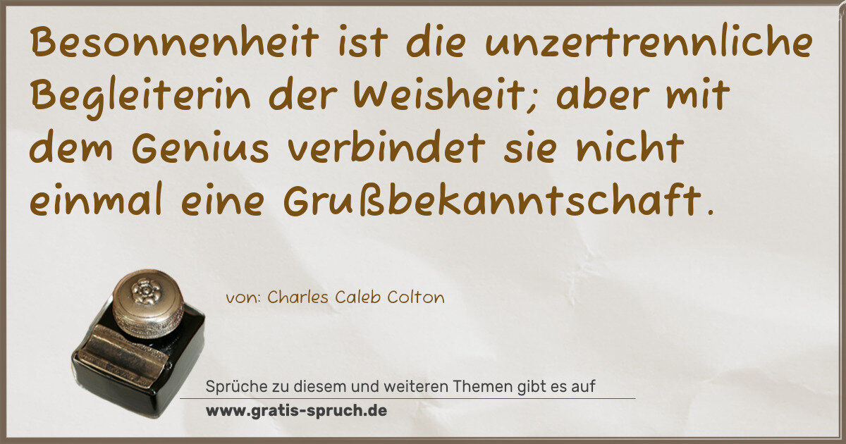 Besonnenheit ist die unzertrennliche Begleiterin der Weisheit; aber mit dem Genius verbindet sie nicht einmal eine Grußbekanntschaft.