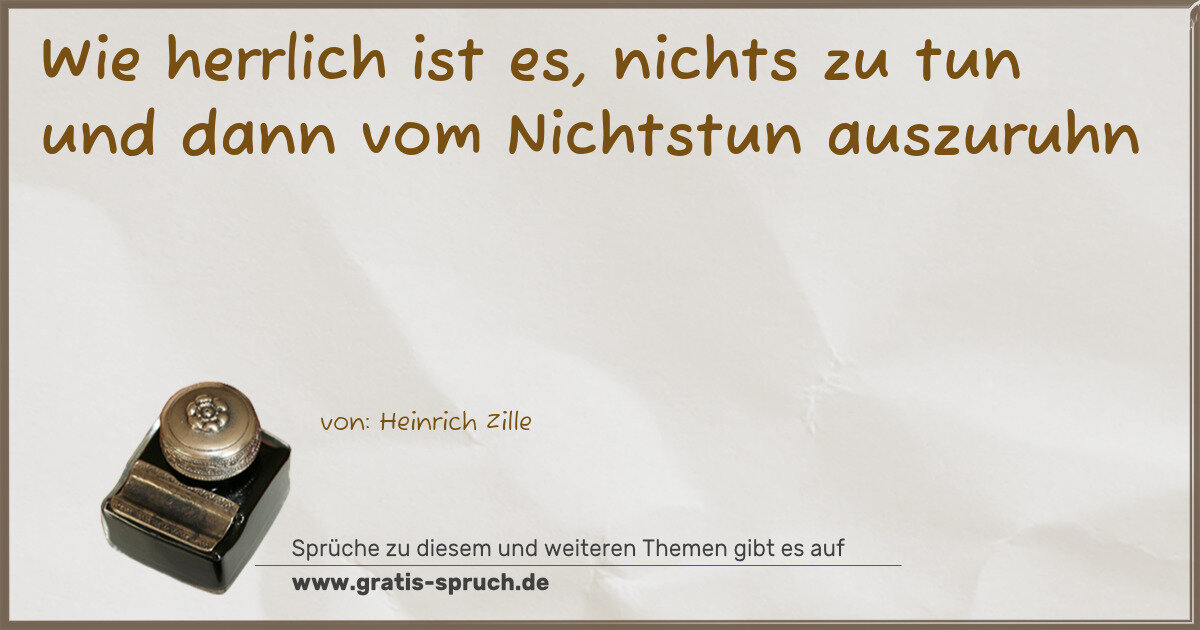 Wie herrlich ist es, nichts zu tun und dann vom Nichtstun auszuruhn