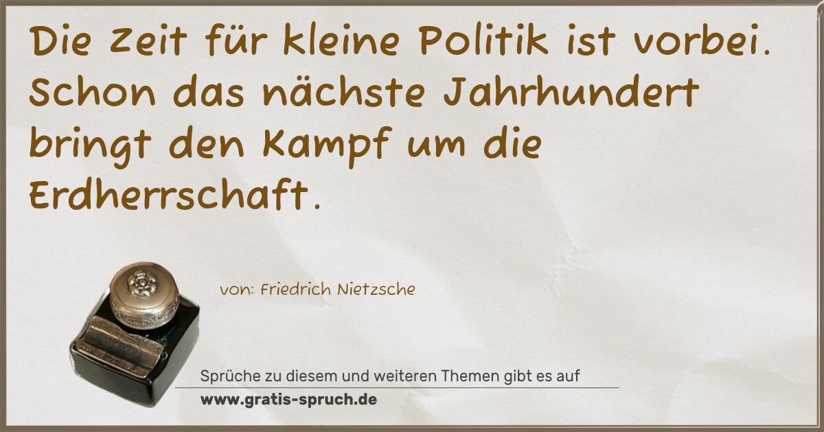 Die Zeit für kleine Politik ist vorbei. Schon das nächste Jahrhundert bringt den Kampf um die Erdherrschaft.