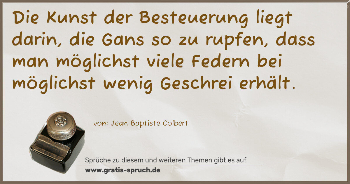 Die Kunst der Besteuerung liegt darin, die Gans so zu rupfen, dass man möglichst viele Federn bei möglichst wenig Geschrei erhält.