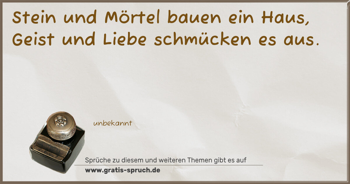 Stein und Mörtel bauen ein Haus, Geist und Liebe schmücken es aus.